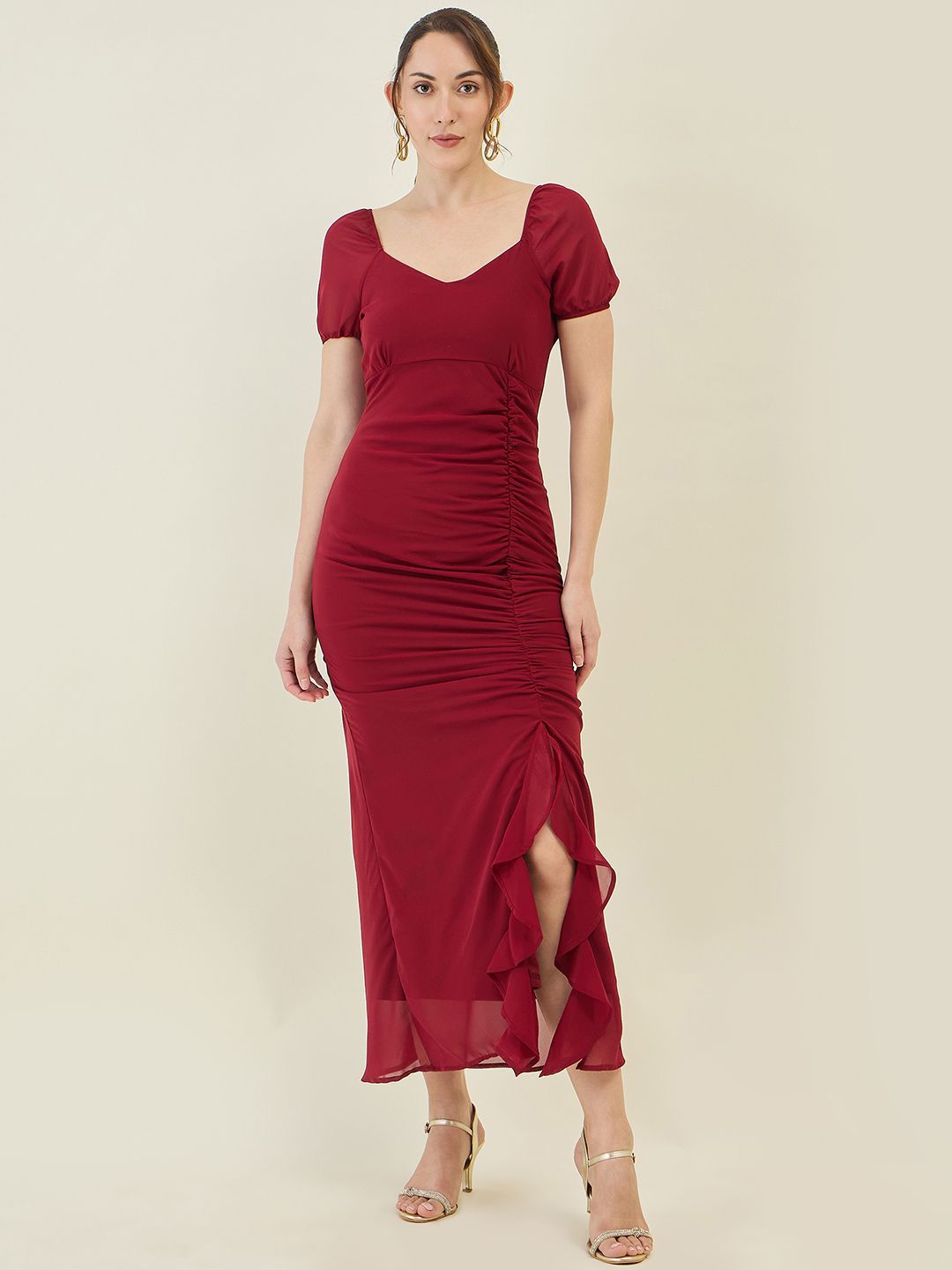 aayu Women Puff Sleeves Bodycon Midi Dress