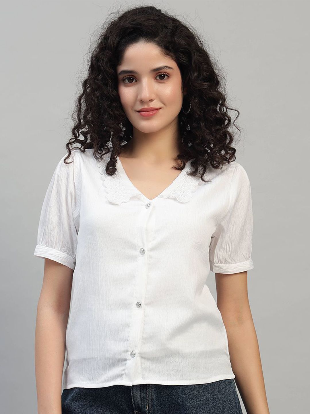 SHAHVEER CREATION Embroidered Schiffli Blouson Crop Top