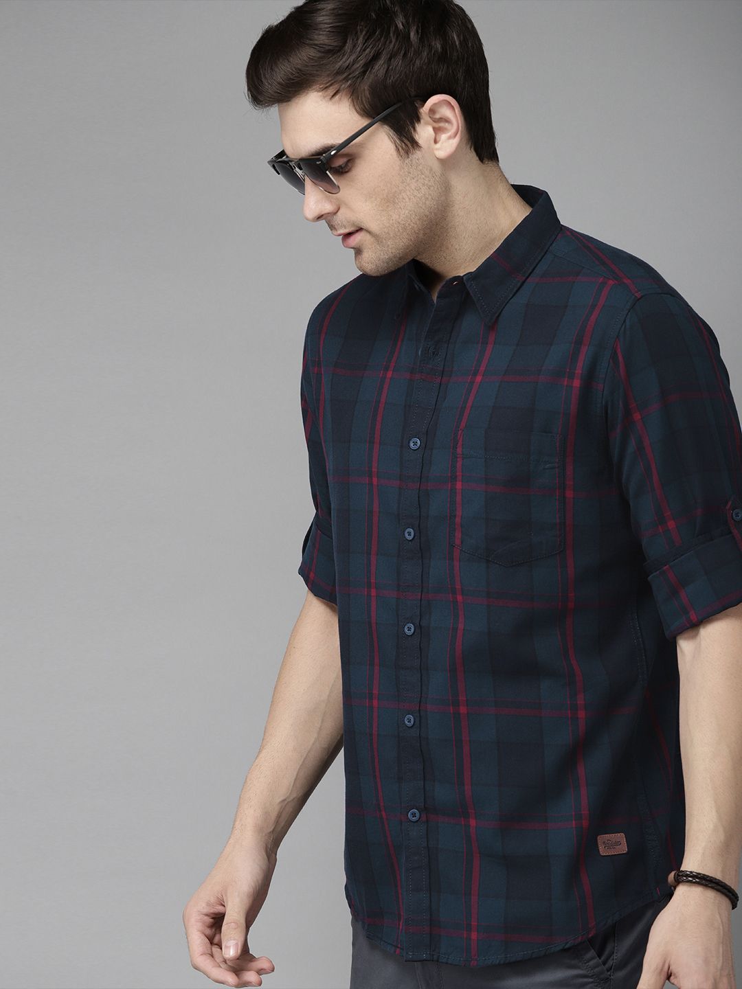 The Roadster Lifestyle Co Men Navy Blue & Red Regular Fit Checked Casual Shirt