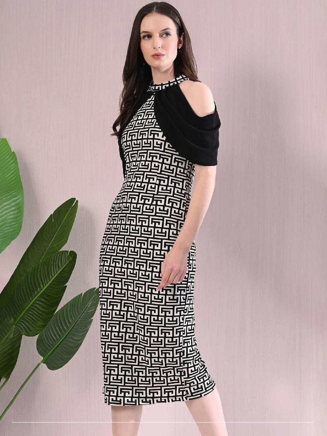 ZEUGEN Print Cold-Shoulder Bodycon Midi Dress